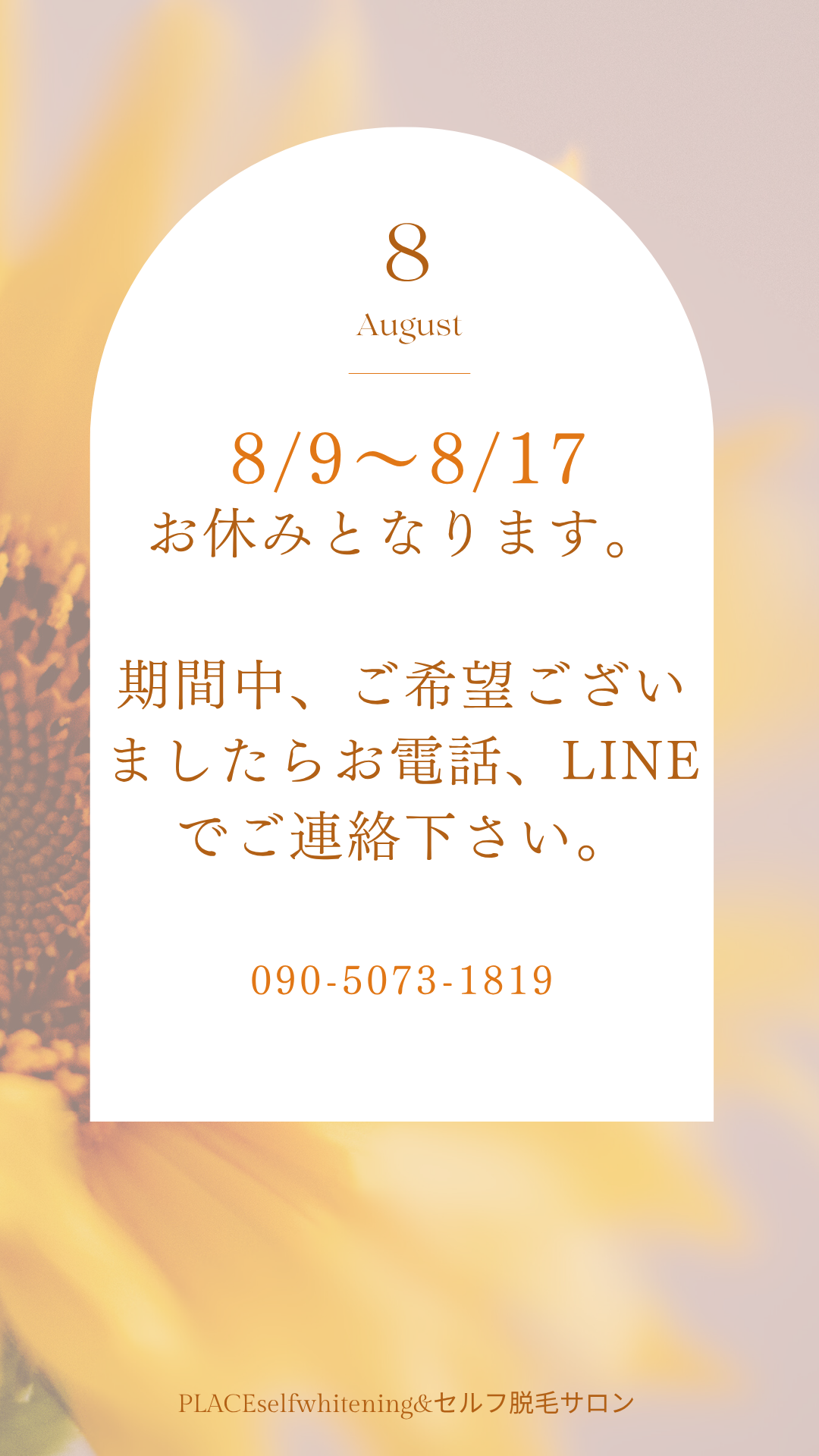 帯広 セルフホワイトニング&セルフ脱毛PLACE 8月9日から8月17日までお盆休みを頂きます。期間中、ご希望ございましたらご相談くださいご予約は・TEL090-5073-1819・HPhttps://place2019.comからお気軽にお問い合わせください♀一度来ていただいたお客…